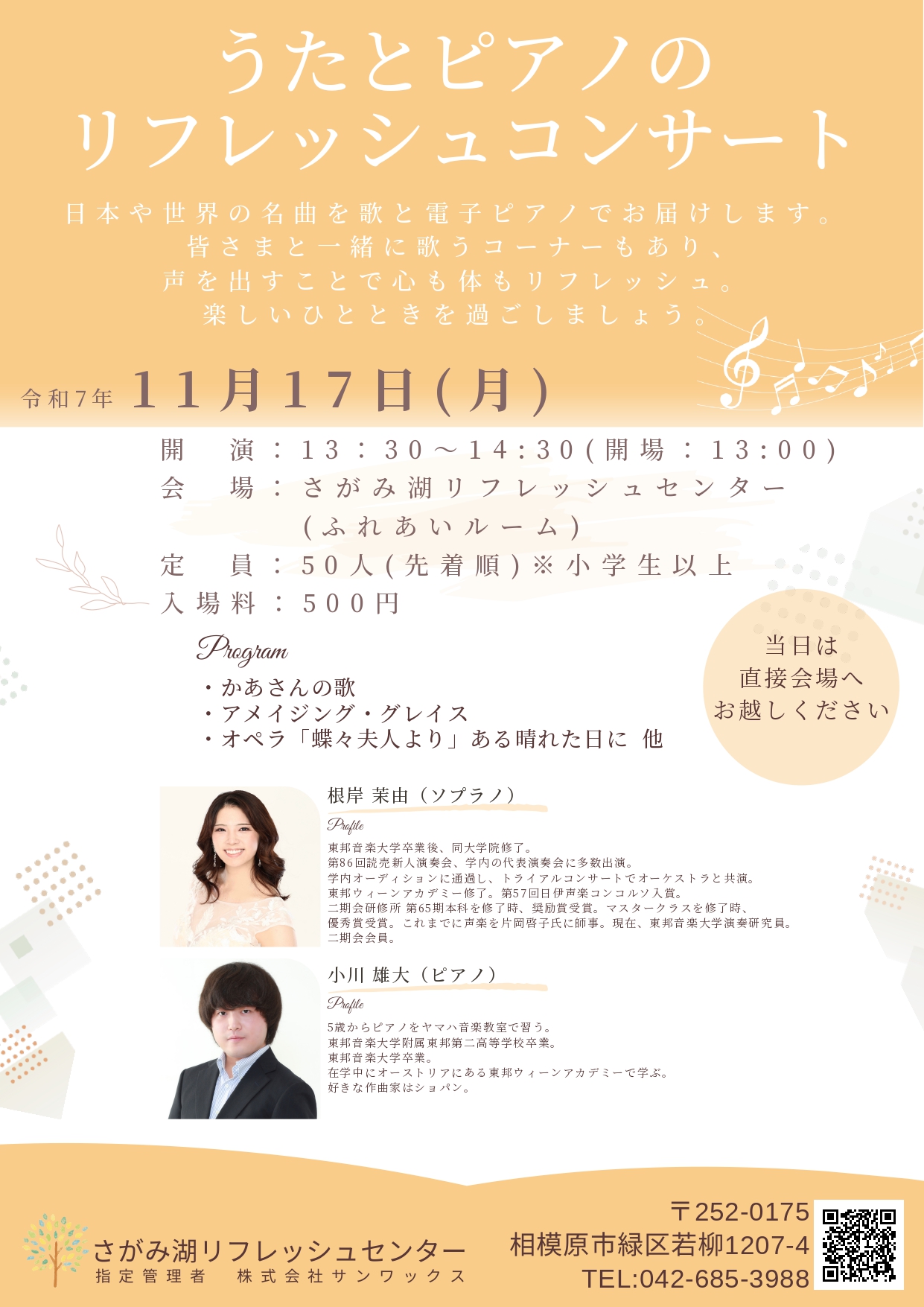 11月17日(月曜日)「歌とピアノのコンサート」開催します