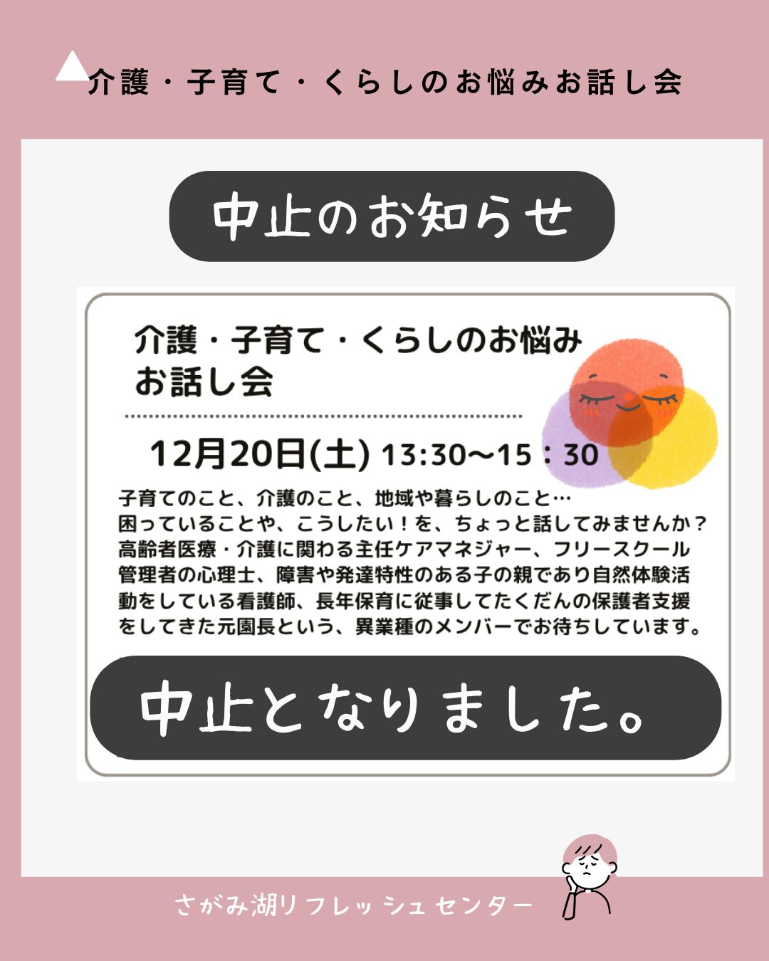 令和7年12月20日(土曜日)「介護・子育て・暮らしのお悩みお話し会」は開催中止となりました。